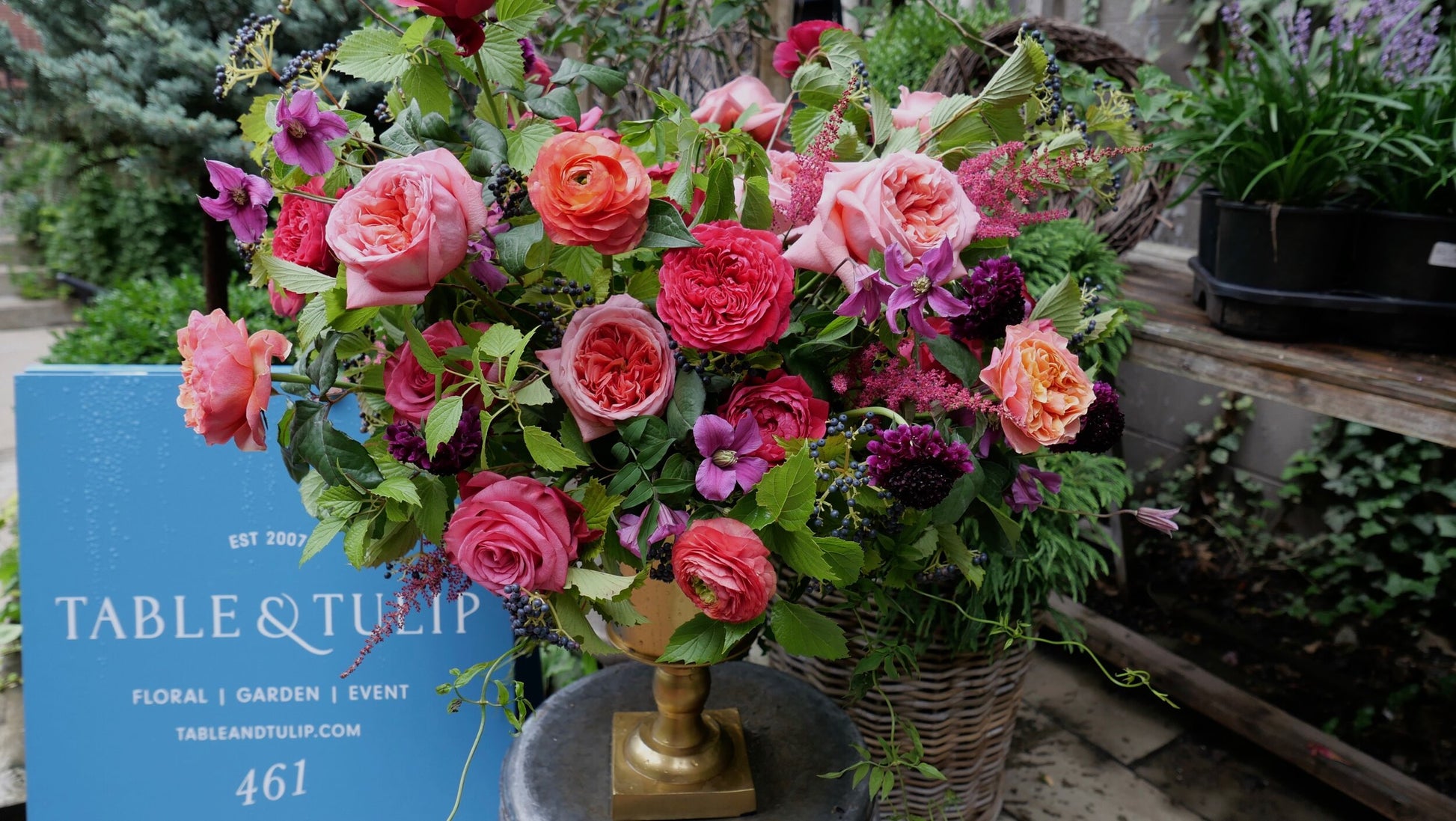 Arranged in a leaf-lined cylinder glass vase. Images shown are examples of previous ‘Queen For A Day’ designer’s choice arrangements.